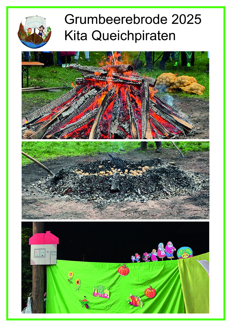 Am Samstag, 27.09.2025, haben wir auf dem Zeltplatz unser traditionelles Grumbeerebrode gefeiert. Zur Begrüßung standen alle Kinder und Erwachsenen um das Feuer und wir haben unsere einstudierten Lieder gesungen und unser Fingerspiel gezeigt. Nachdem wir alle mit Grumbeere und Quark gestärkt waren, gab es für alle noch das Stabtheater vom kleinen Rübchen. Wir danken den Feuermachern, den Kuchenbäckern und dem Küchenteam für den leckeren Quark und freuen uns schon auf die nächsten Aktionen in unserer Kita.